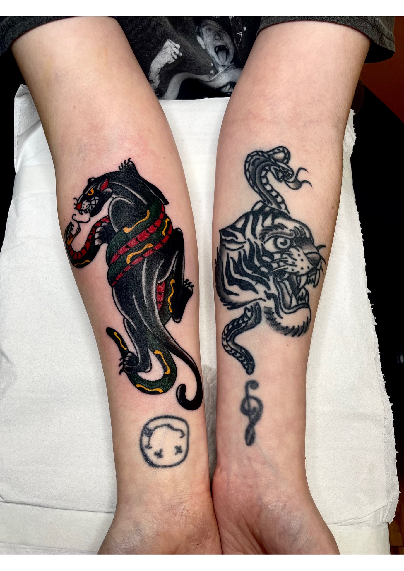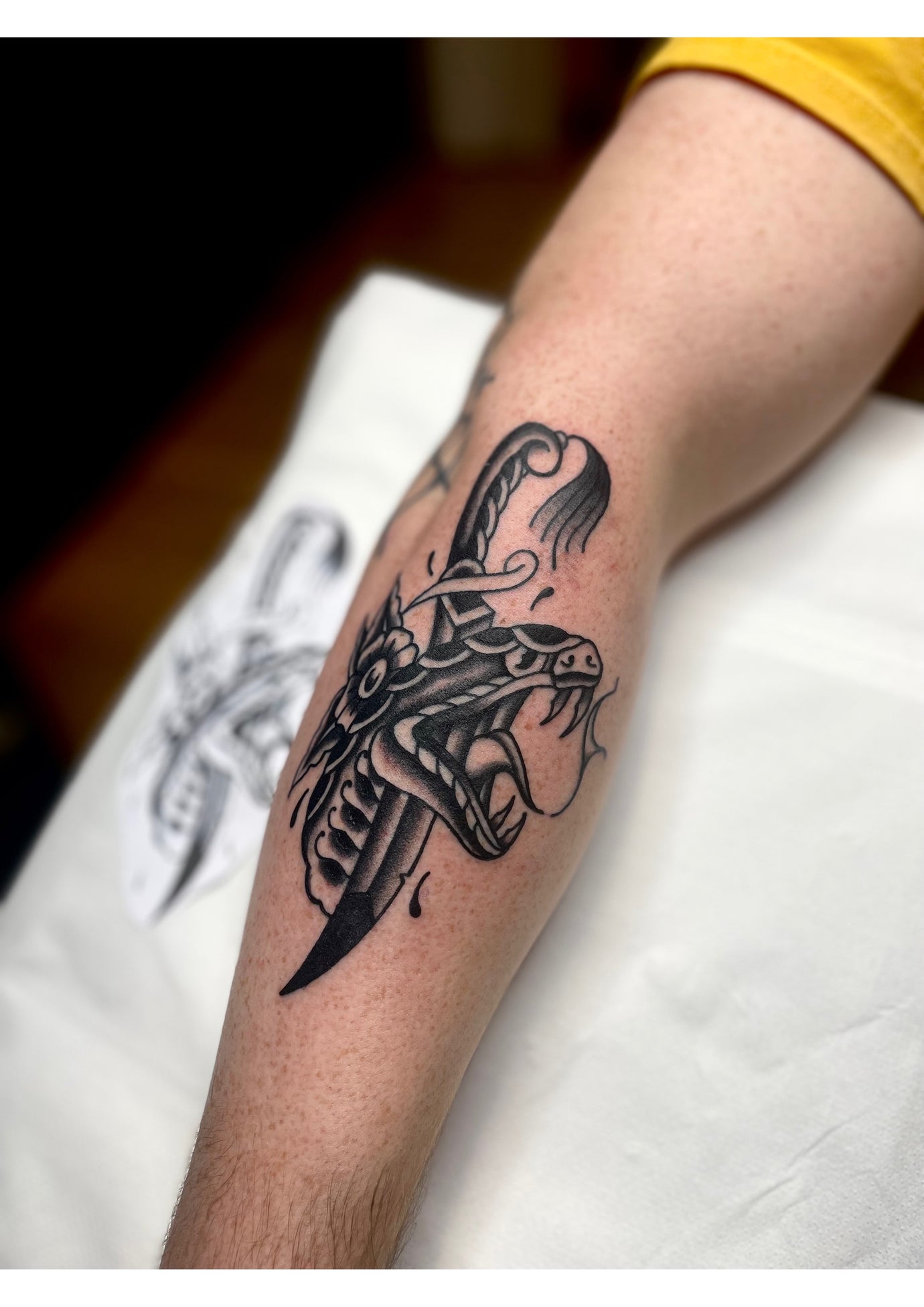 Born in Cork City, Chase has had a passion for art and painting since his early years. He started to paint Graffiti in 2007 and is still an active graffiti artist to this day. He enjoys combining two of his biggest interests as often as he can; Travelling and Painting! Chase has been influenced by tattooing since his teens but only decided to begin tattooing himself since early 2020. Chase has a great appreciation for Traditional tattooing but has an open mind in regards to which style he would like to pursue in the future. Chase began working as an apprentice in Smiley Dogg Tattoo during the summer of 2021!