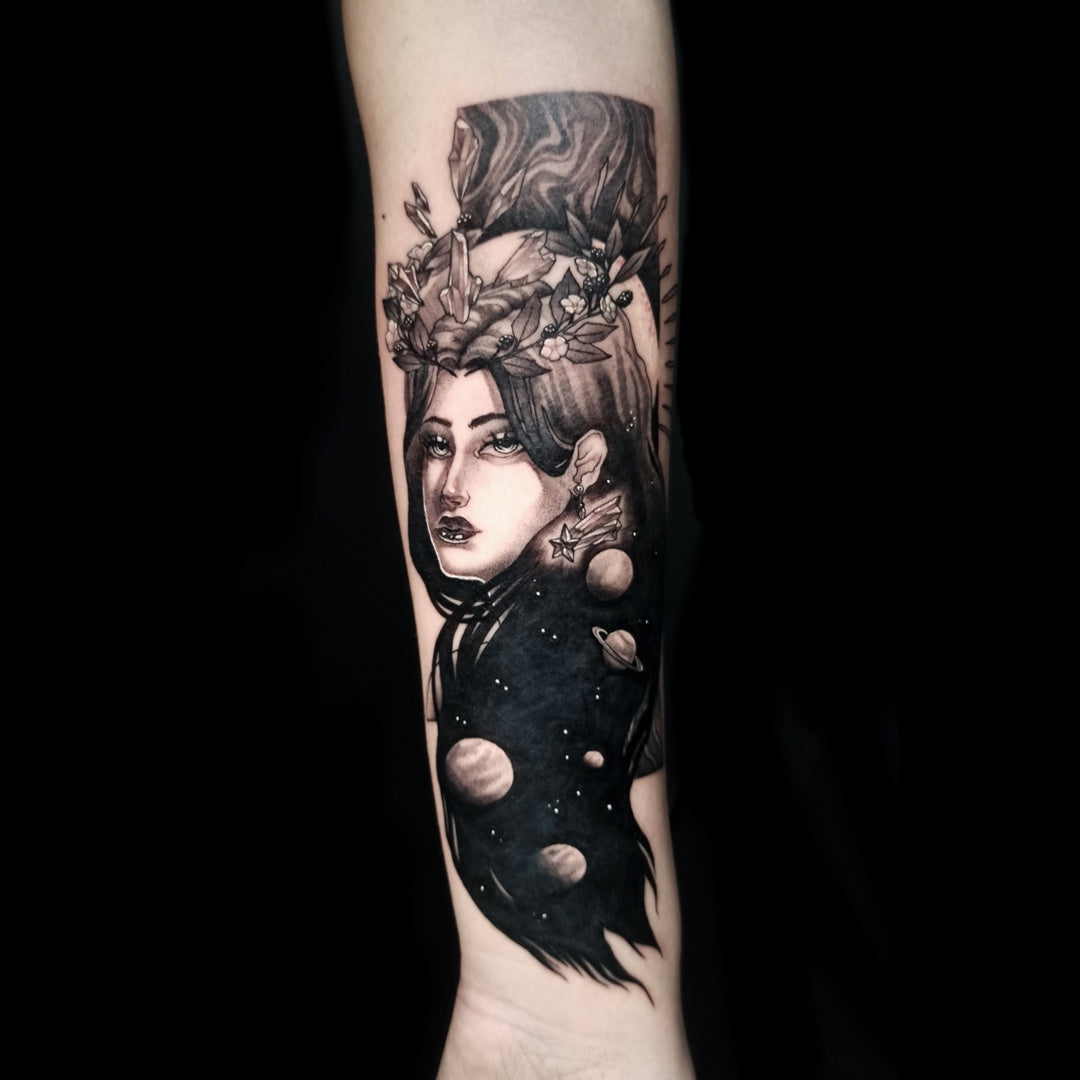 Through hard work and dedication, combining his body of work and gathered knowledge in anatomy and technique, he realised it was time to make skin his new canvas. Crow started to learn and tattoo for more than 3 years in Spain, after which time he made the decision to come to Cork.