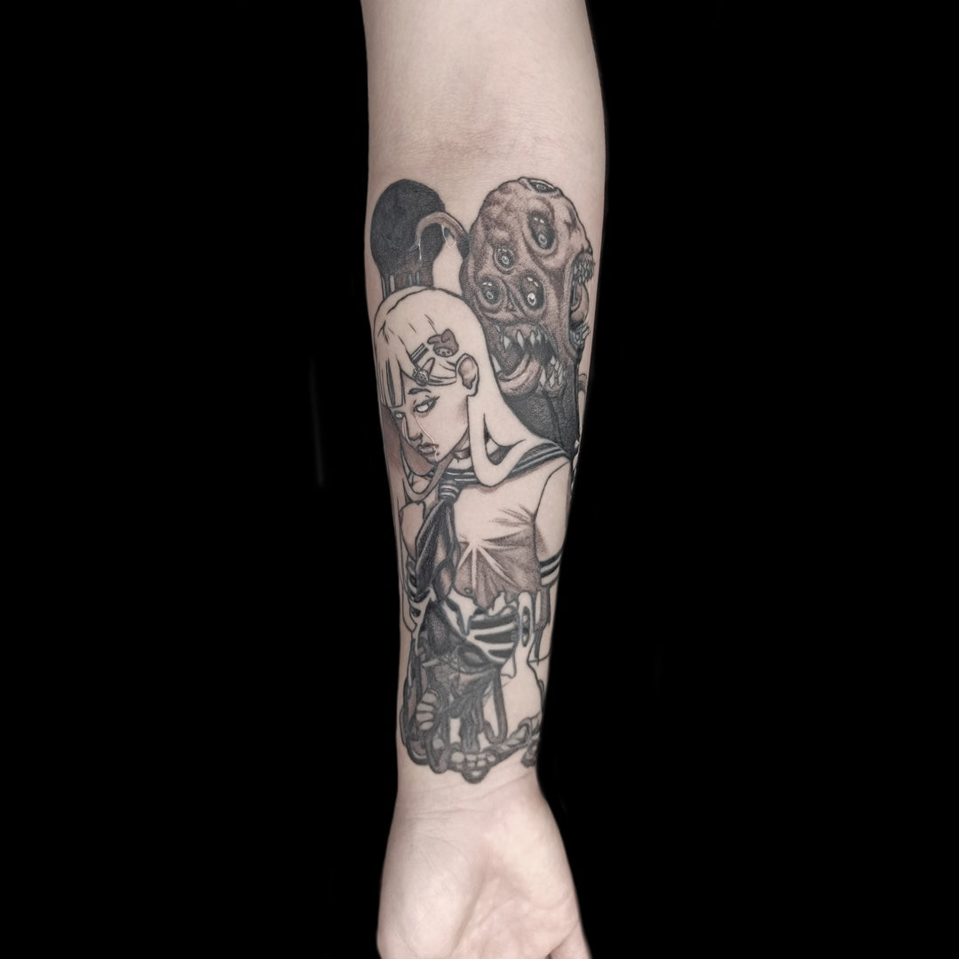 Once again, a new beginning in his never-ending pursue to polish his skills and master his craft, he brings us his characteristic illustrative black-work with an attention to detail and customer care which is second to none.