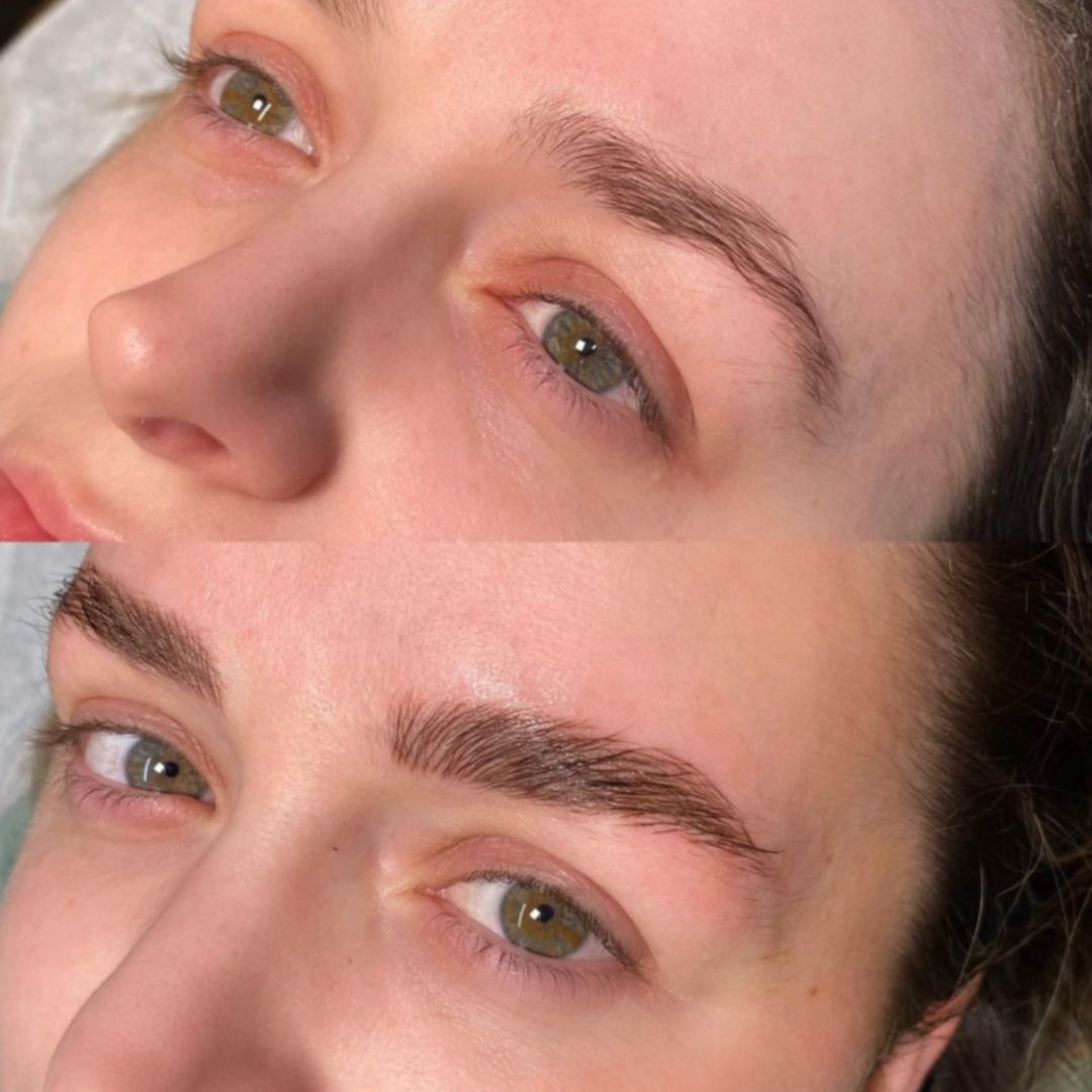 After the procedure, your eyebrows will appear darker and more defined. Over the next few days, slight scabbing may occur, and it's important not to pick at these scabs to ensure proper healing. The complete healing process takes about 4 weeks, during which the color will soften and settle into a natural look.