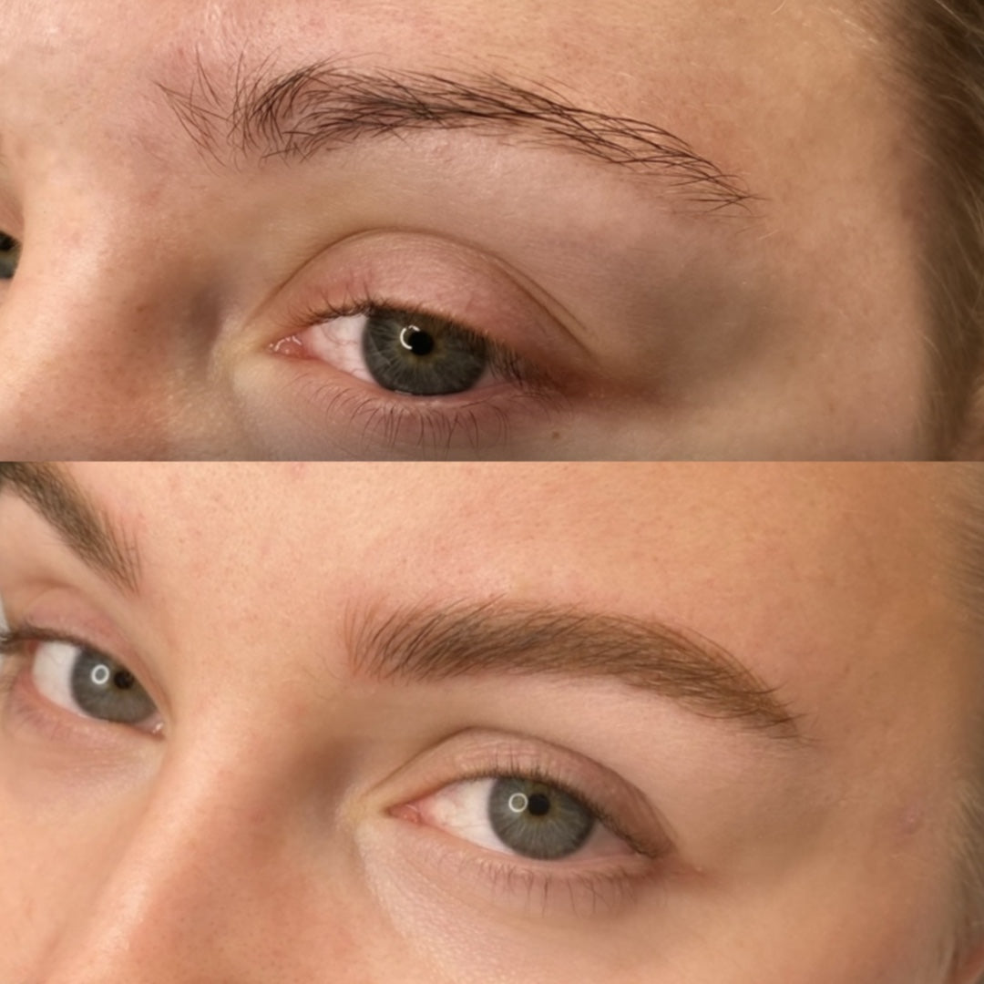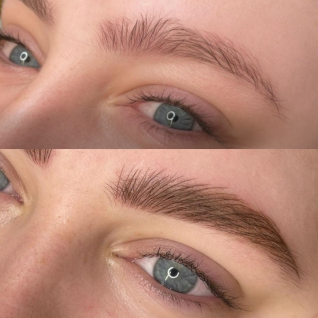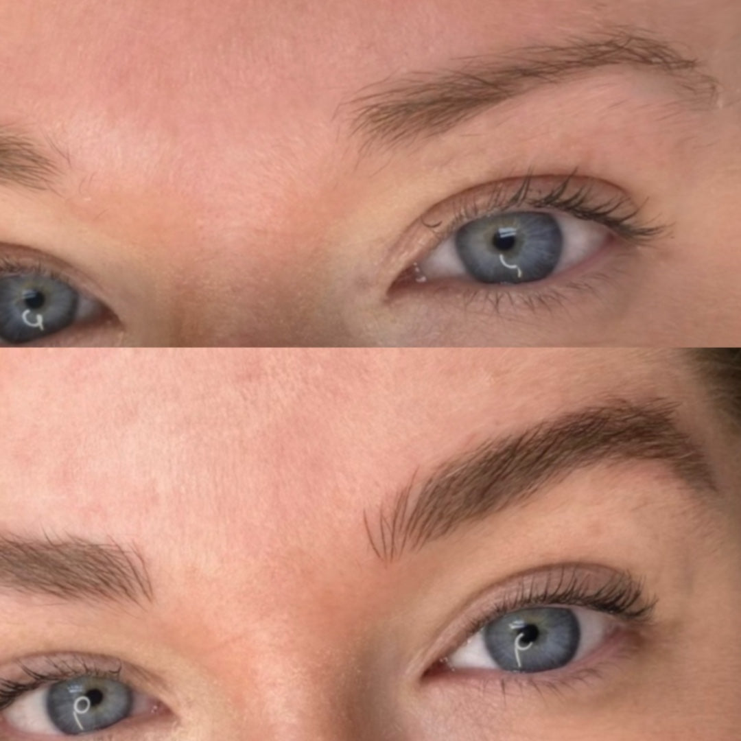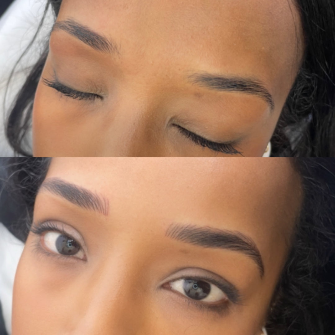 Microblading is a semi-permanent cosmetic procedure that uses a specialized handheld tool with fine needles to create delicate, hair-like strokes on the skin. This technique deposits pigment to mimic the natural appearance of eyebrow hairs, resulting in fuller and more defined brows tailored to complement your facial features.